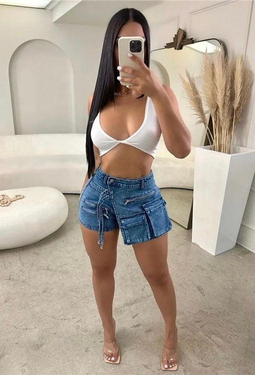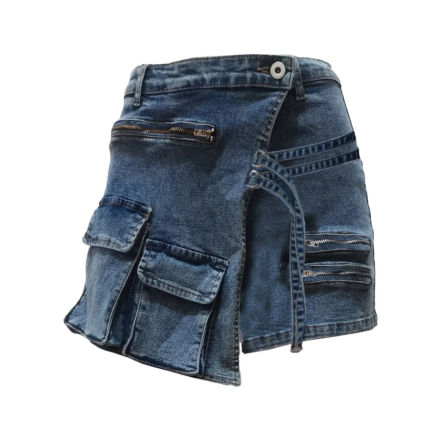 Introducing Bry's Denim Cargo Skort - a unique and stylish addition to your spring and summer wardrobe! Made of durable denim, this skort combines the comfort of shorts with the style of a skirt. Perfect for a casual day outside, stand out with this one-of-a-kind design!