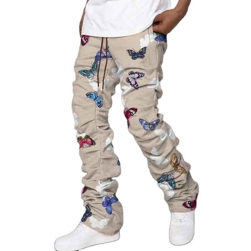 The Butterfly Stack Joggers offer a unique blend of fashion and quality. The men stacked joggers feature an eye-catching butterfly pattern, ensuring you stand out while keeping comfortable. Crafted with care and quality for modern style.