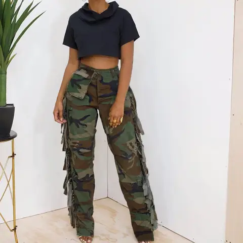 Camouflage Cargo Fashion Tassel Pants
