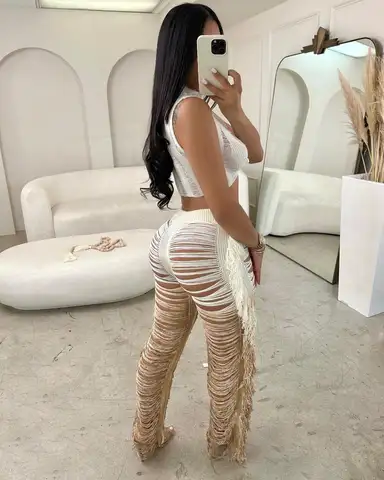 This Casual 2piece Fringe Vest and Tassel Pant Suit is the perfect choice for sophisticated style with a fashionable twist. It features a fringe New Style vest and a tassel pant set with a comfortable fit, making it perfect for everyday wear. A Must Have !!!!