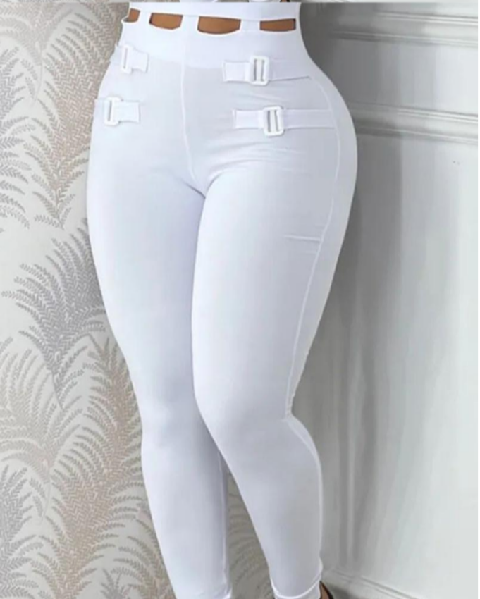 This Casual Hollow Out Halter Buckled Mesh Jumpsuit is a stylish choice for any casual occasion. Crafted from a mesh fabric, this jumpsuit features a halter top, contrast buckle, and a solid white hue. The jumpsuit is sure to provide you with a breathable and comfortable fit.