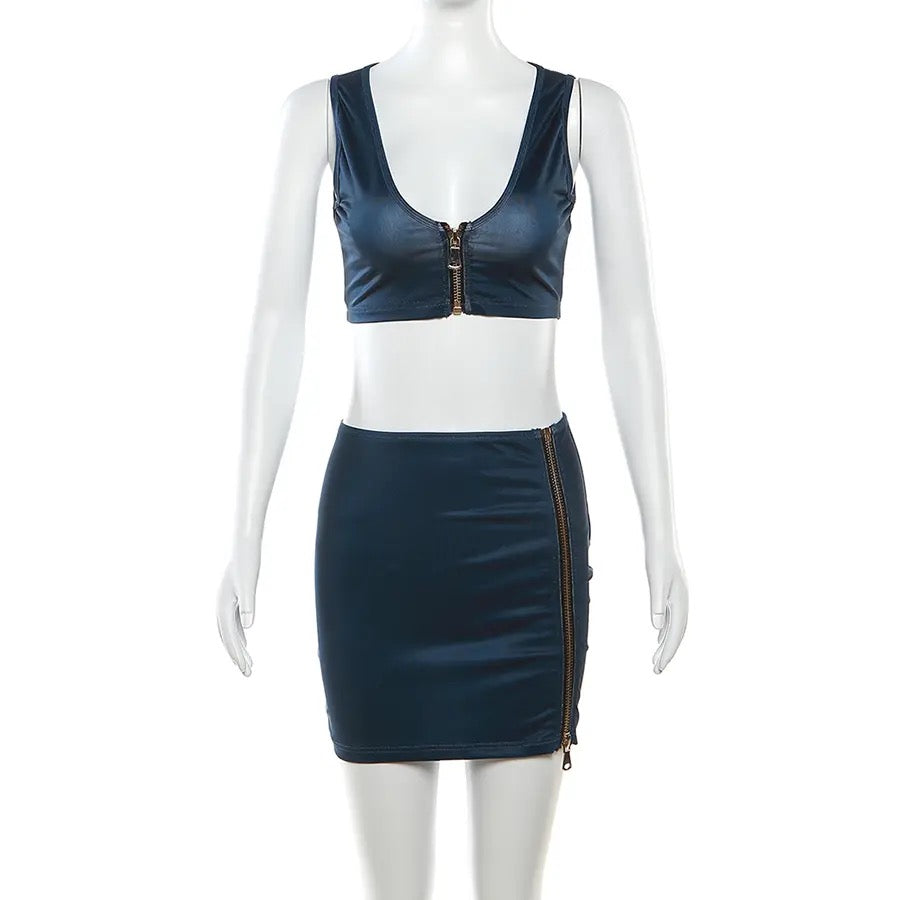 The Finesse Zip Up Skirt set offers a unique side zipper on its skirt, providing both style and functionality. The included tank top makes it a versatile option for spring and summer fashion. Elevate your wardrobe with this expertly designed and fashionable set.