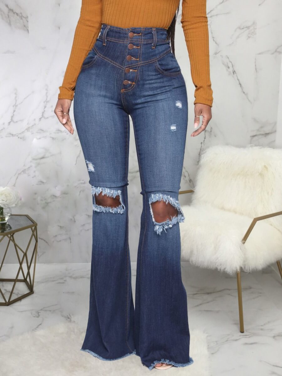 High-waisted Ripped Flared Jeans