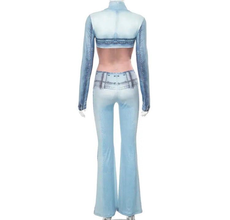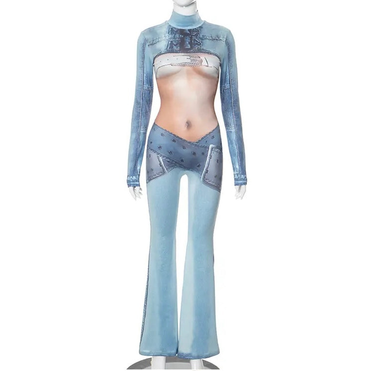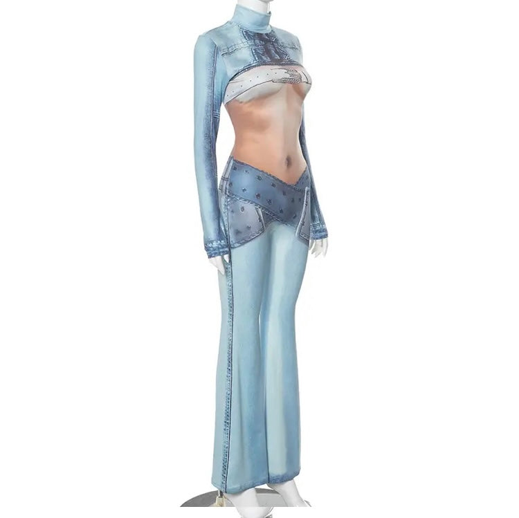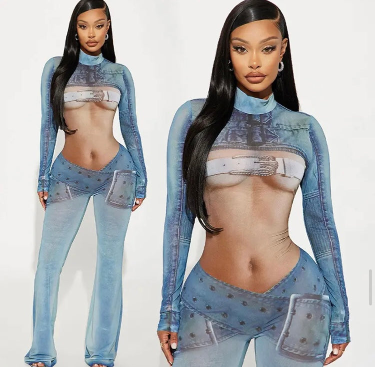 This half sheer jumpsuit, designed by industry expert Jayla Charde’ combines a classic denim look with a trendy, see-through mesh center. Make a fashion statement with this unique Elegant and stylish piece.