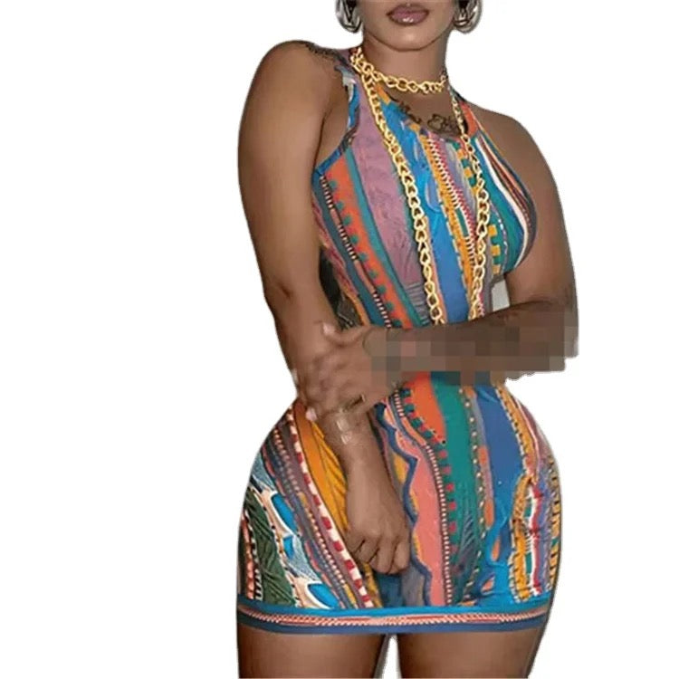 Embrace your unique style with the “ Letnes’ Vintage Mini Dress”. The casual abstract design exudes confidence while the bodycon fit accentuates your curves. With the shoulders pouting to create a chic silhouette, this dress is a must-have for any fashion-forward individual. Elevate your wardrobe with this statement piece.