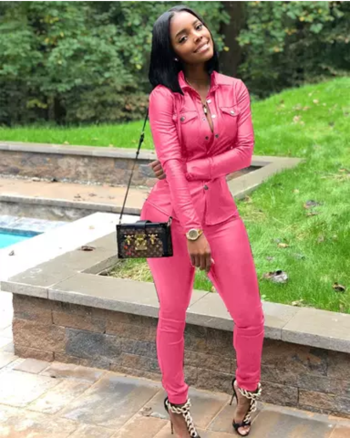 Leather Pant Set Long Sleeve Zippers Pu Coat