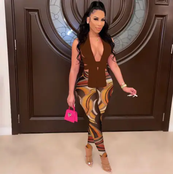 Casual Solid 2-peice V-Neck Pants Set, perfect for a warm day out on the town. A Head Turner. High Quality Material,