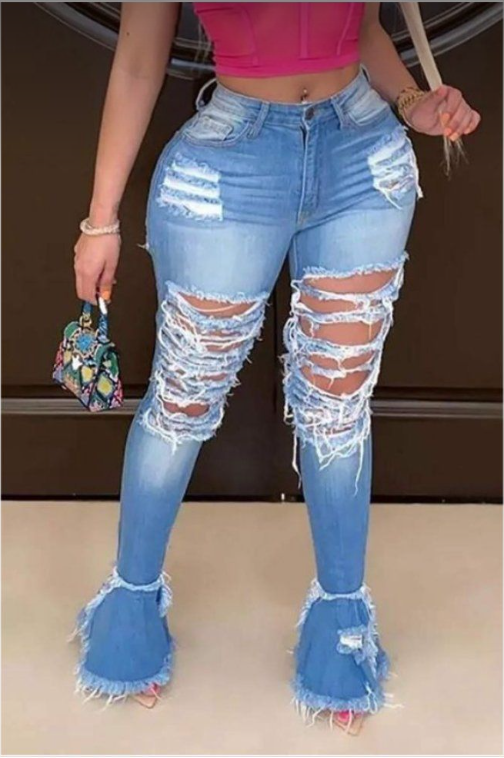 High Quality Flare Ripped Jeans. Comfortable, breathable, and Sexy,