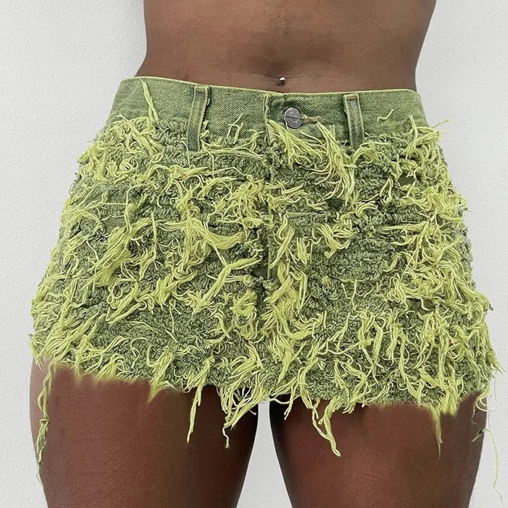 Elevate your style with our Rodeo Tassel Mini Skirts. The ragged fringe accent adds a touch of boho-chic to this trendy and fashionable mini skirt. Perfect for any occasion, this skirt will have you looking effortlessly stylish. Compliment your wardrobe with this must-have piece.