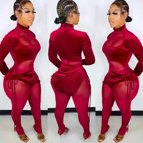Velvet Mesh See-Through Valor OnePiece Jumpsuit