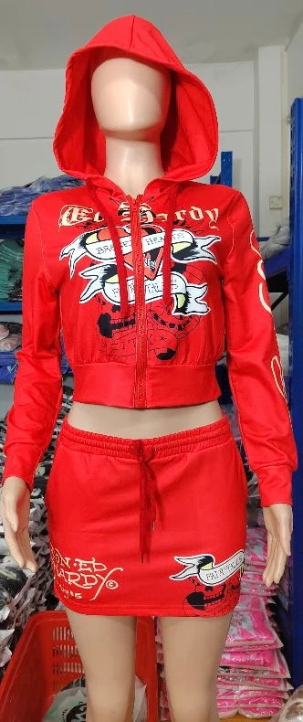 This fashionable Designer Hooded Skirt Set is the perfect addition to your spring and summer wardrobe. With a stylish hooded top and a versatile design, this set is perfect for casual wear and outdoor activities. Made by a fashion designer, this set is sure to elevate your style game. Experience the comfort and quality of designer clothing with this must-have set.